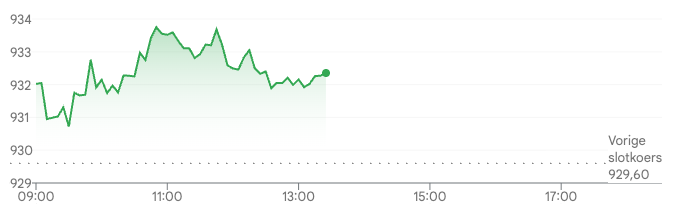 De AEX noteert momenteel 931,73 punten, een stijging van 0,23 procent ten opzichte van het vorige slot. De index opende op 932,02 en bereikte een hoogste punt van 933,83 .