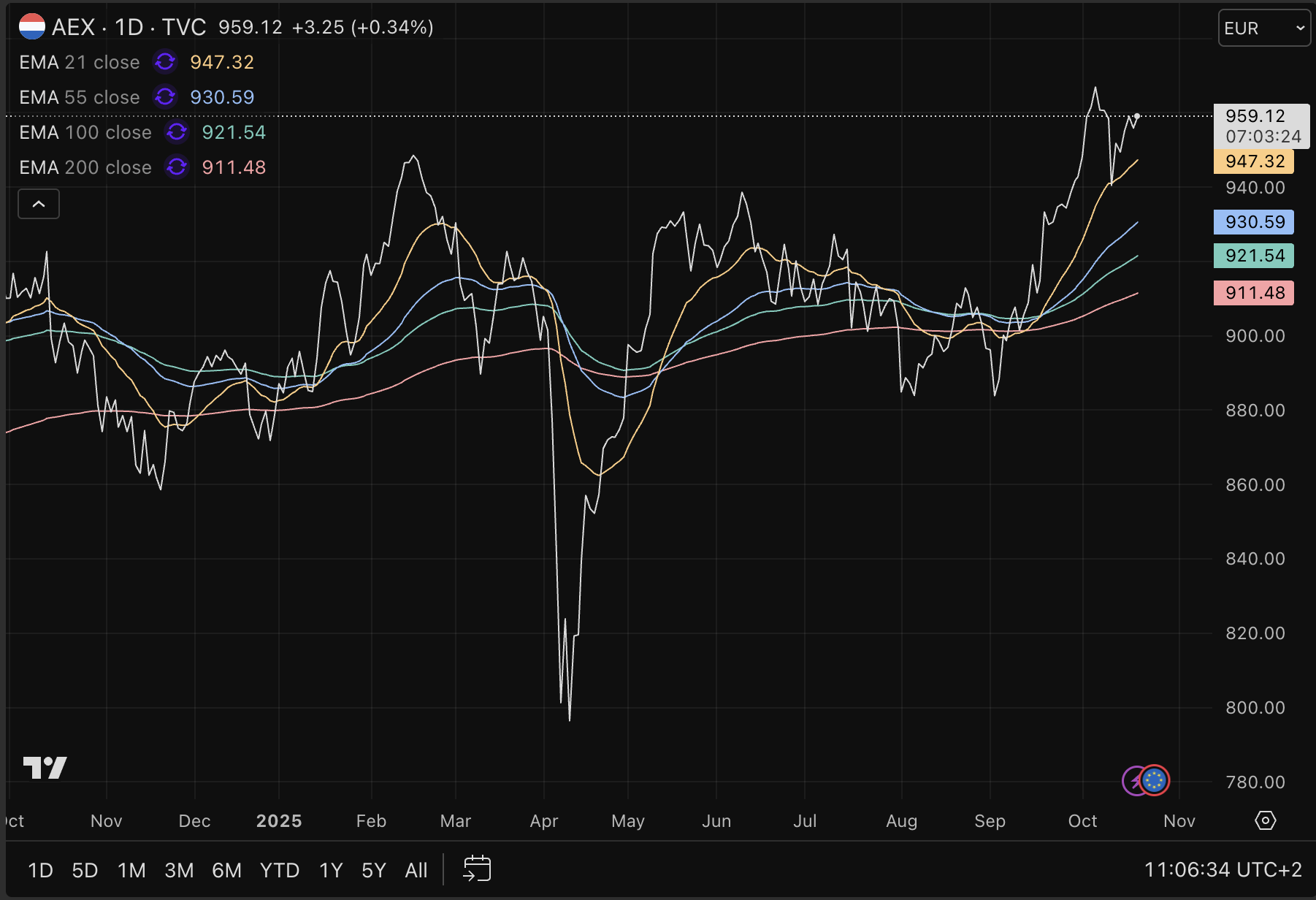 Dat zorgt voorlopig weer voor een positief klimaat voor de AEX, waarin het mogelijk naar nieuwe records kan stijgen in het laatste kwartaal van 2025.
