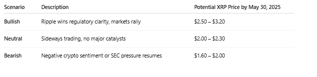 Voor de prijsvoorspelling werd gekeken naar de modellen van ChatGPT en Grok AI. ChatGPT verwacht bij aanhoudend positief sentiment, vooral door meer duidelijkheid over regelgeving of nieuwe bankpartnerschappen, een koers tussen de $2,50 en $3,20. In een stabielere markt ziet het model de prijs eerder rond de $2 tot $2,30 bewegen. Mocht het sentiment verslechteren door bijvoorbeeld SEC-ontwikkelingen, dan zou XRP kunnen terugvallen naar een prijsvork van $1,60 tot $2.