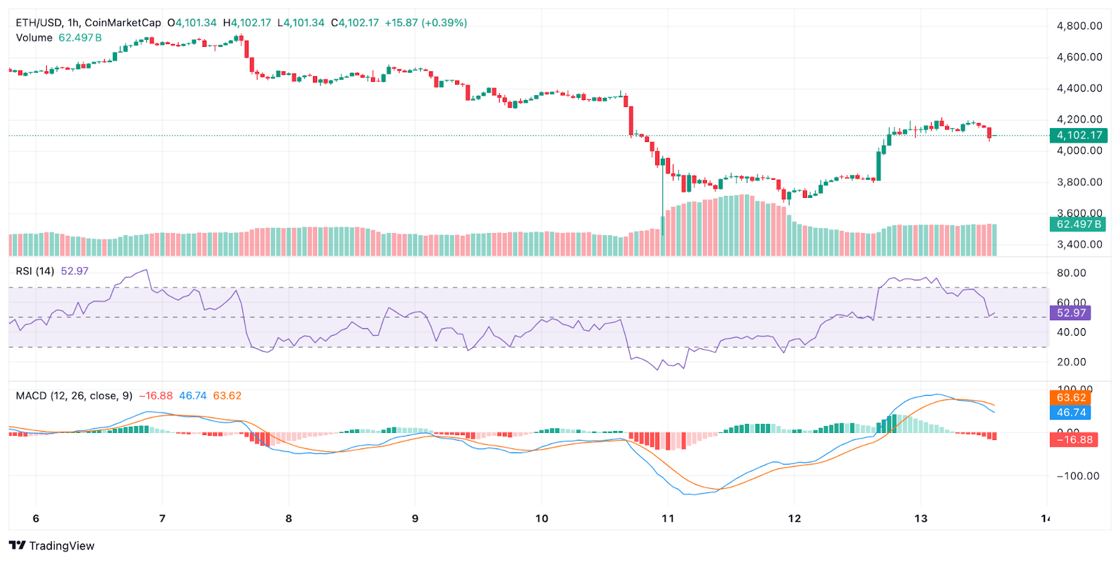 De volgende belangrijke zone ligt volgens crypto experts bij $4.500. Dat niveau fungeert als weerstand en in eerdere cycli het begin van een opwaartse beweging. Technische indicatoren zoals de RSI en de MACD tonen ondersteunen dit beeld.