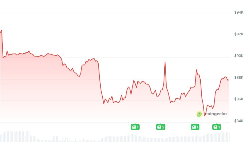 Die aarzeling bij de particuliere belegger (‘retail’) is overigens niet zonder reden. Bitcoin vecht technisch gezien tegen de weerstandszone van 93.000 dollar, waar de koers recent werd afgewezen. Op het moment van schrijven schommelt de BTC-koers rond de 88.000 dollar.