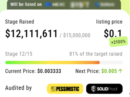 Tot nu toe is het halverwege gekomen, met meer dan $14 miljoen opgehaald, en de prijs van de $XYZ-token staat momenteel op $0.003333.