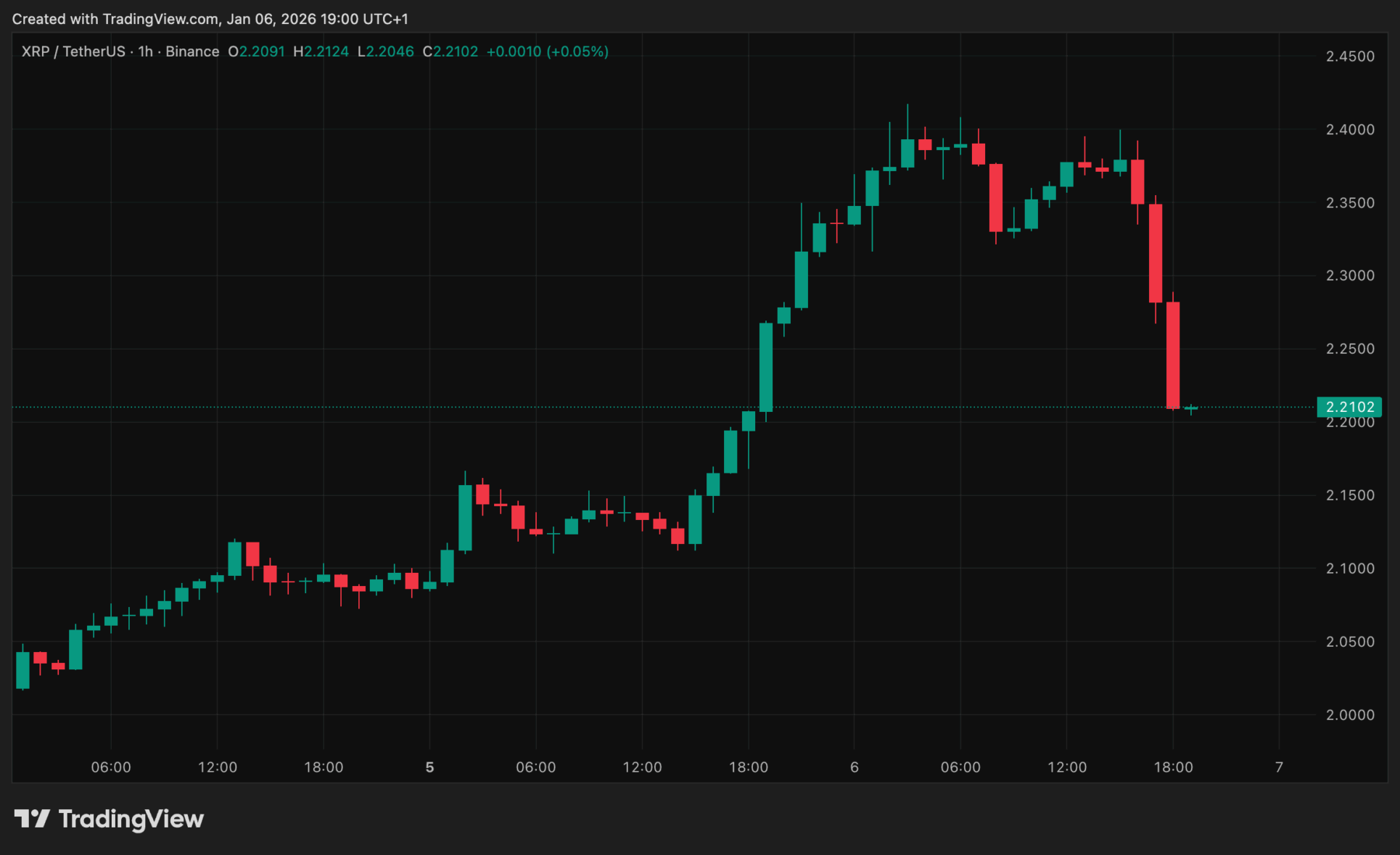 Niet alleen Bitcoin kreeg het moeilijk. Ook altcoins gingen stevig onderuit. De koers van XRP daalde in slechts enkele uren van 2,39 naar 2,21 dollar, een verlies van ongeveer 7 procent.