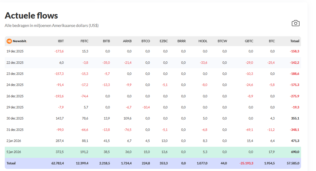 Daarmee wordt een aanzienlijk deel goedgemaakt van de verliezen in november (3,48 miljard dollar) en december (1,08 miljard dollar), waarin het marktsentiment nog overwegend negatief was. Dat blijkt uit data van SoSoValue.