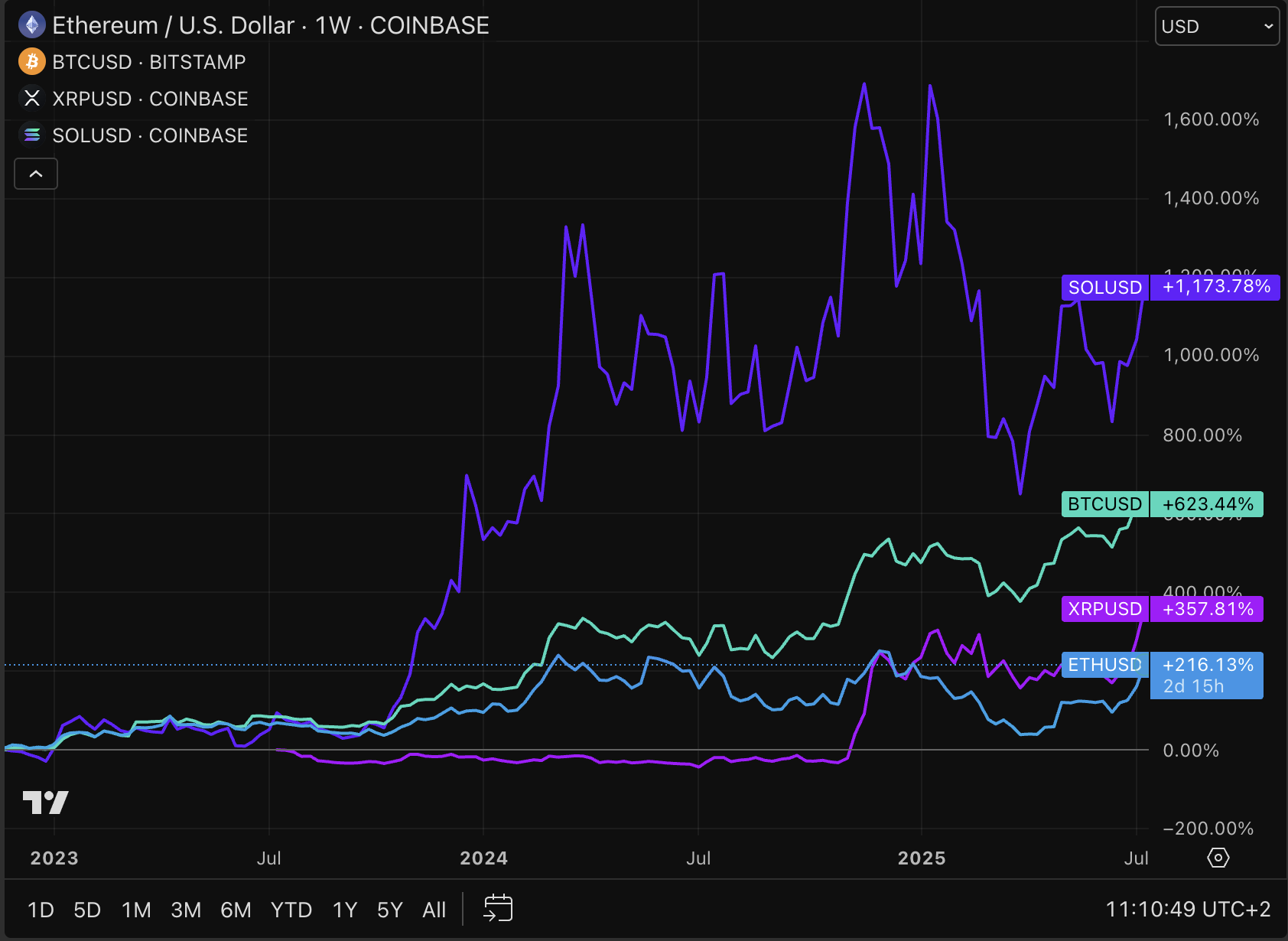 Zou dit dan het moment zijn waarop projecten als Ethereum, XRP en Solana hun moment pakken?