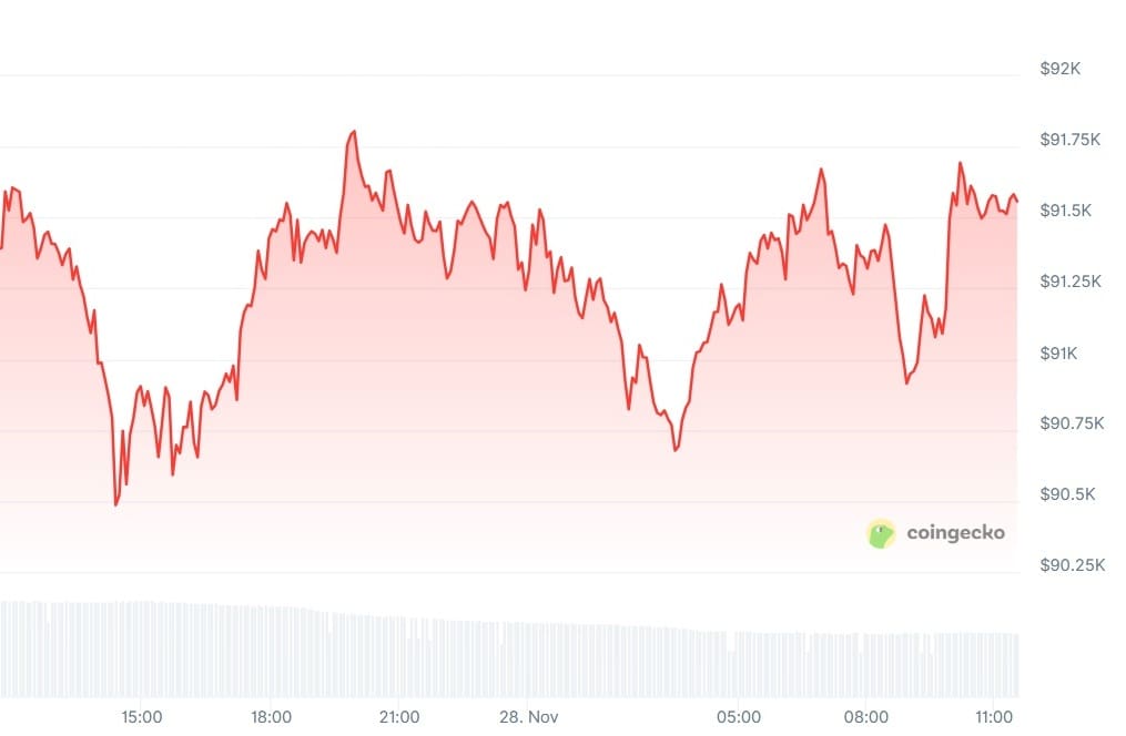 Bitcoin-koers van de afgelopen 24 uur. Bron: Coingecko.