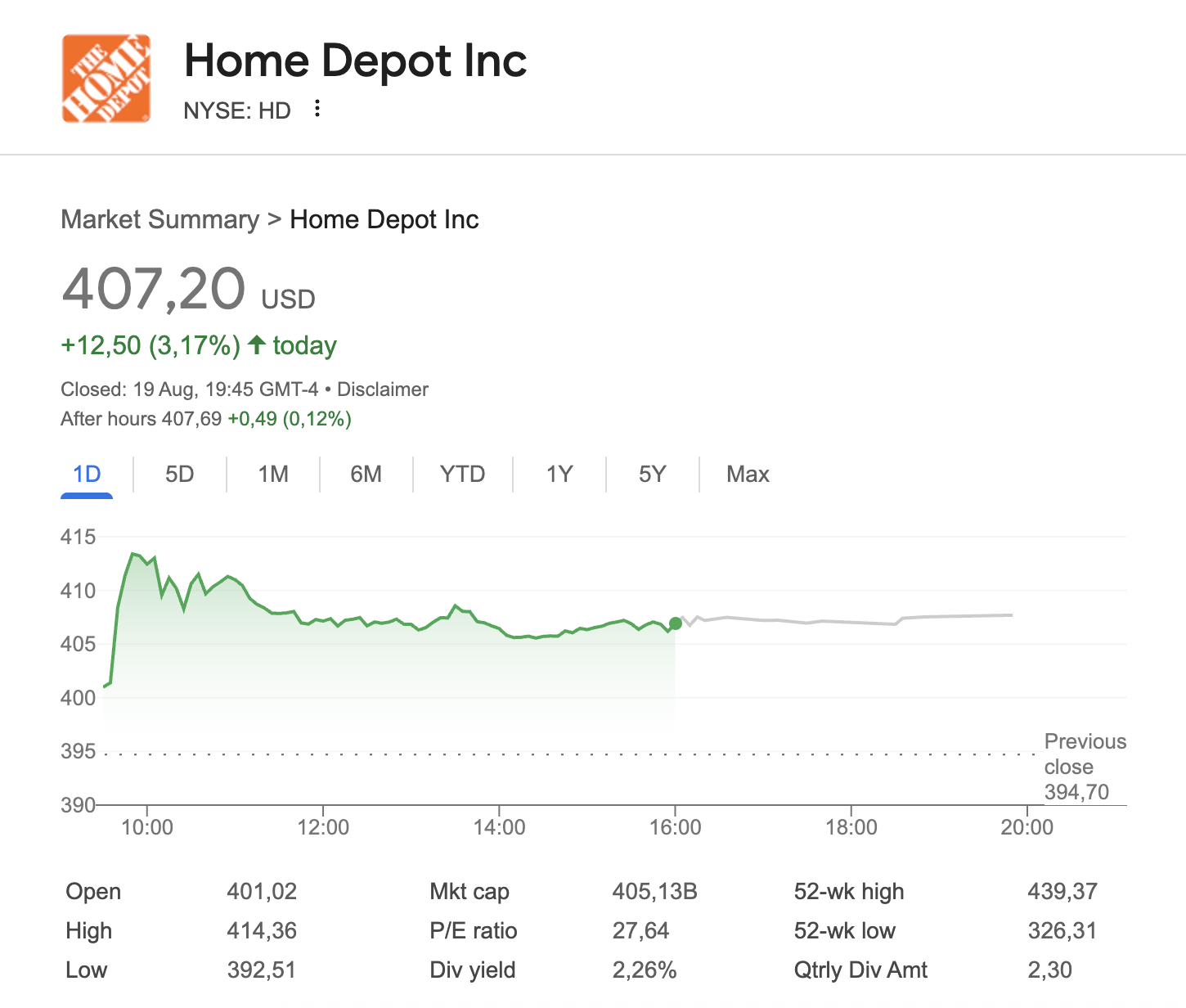 Met Home Depot heeft de eerste grote retailer al kwartaalcijfers gepubliceerd. Hoewel niet helemaal werd voldaan aan de verwachtingen van de analisten, schoot het aandeel toch omhoog omdat de verwachtingen voor de langere termijn hetzelfde blijven.