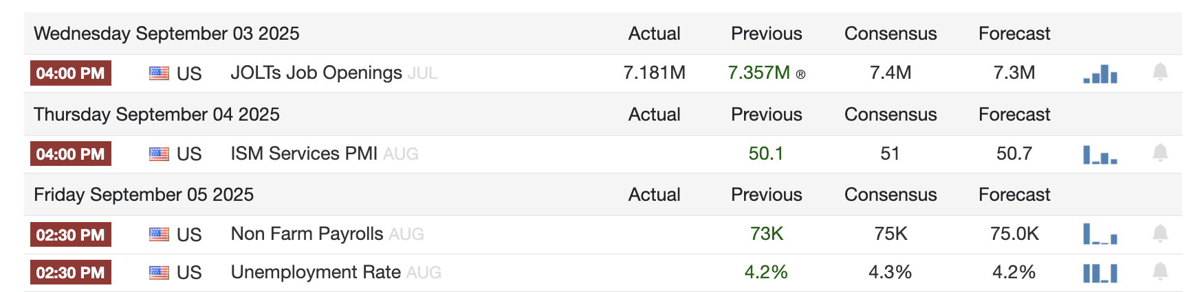 Vrijdag krijgen we dan nog de banengroei, de werkloosheid en de groei van de lonen binnen de Verenigde Staten. Stuk voor stuk datapunten die ons een hoop vertellen over de Amerikaanse economie.