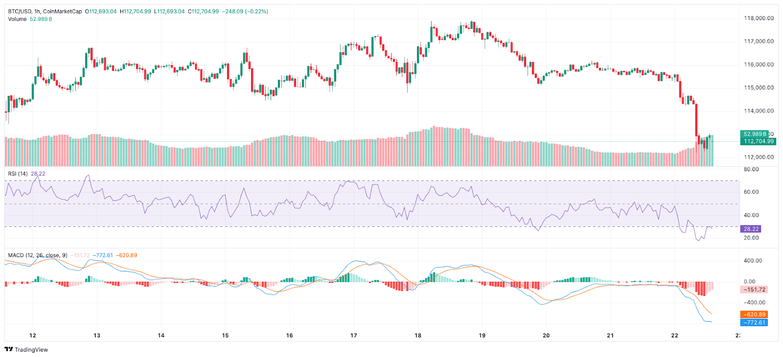 Daarnaast laten technische indicatoren zoals de RSI (Relative Strength Index) bearish signalen zien. De RSI-indicator staat op het moment van schrijven rond 28,22, wat duidt op een oversold territorium.