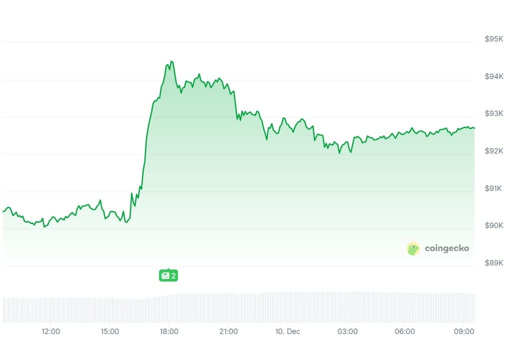 Op het moment van schrijven is bitcoin 92.701 dollar waard, nadat de koers in de afgelopen 24 uur met ongeveer 2 procent is gestegen. De BTC-koers verschilt weinig ten opzichte van een week geleden.