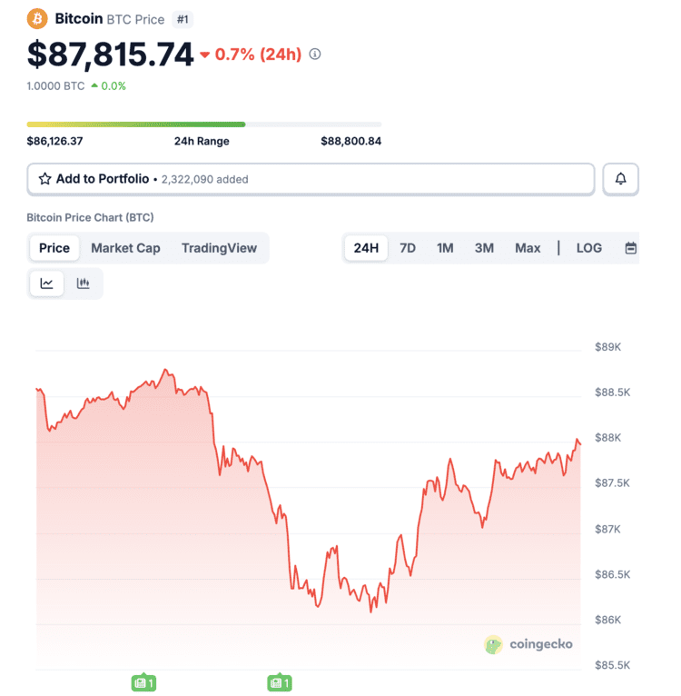 In dit soort situaties kan de koers kort opveren zonder dat er direct sprake is van een trendomkeer. Dat lijkt nu ook het geval, nu bitcoin na de dip is opgeklommen richting 88.000 dollar.