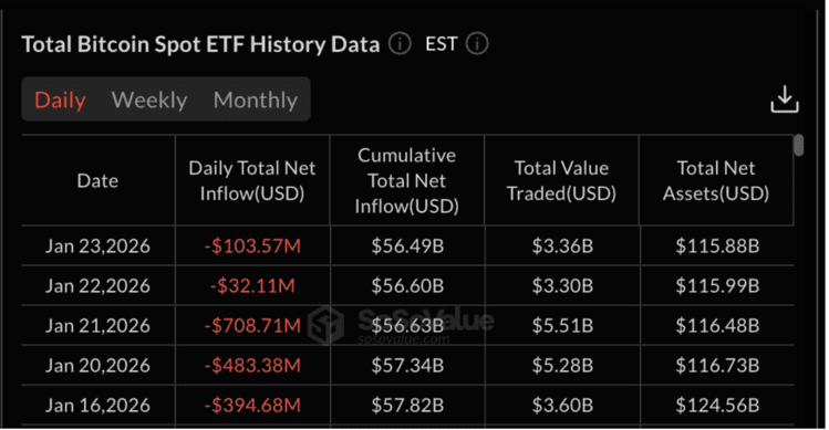 Een ETF is een beursproduct waarmee beleggers kunnen investeren in bitcoin zonder het zelf te kopen of op te slaan. Als er geld uit deze ETF’s wegstroomt, betekent dat dat grote beleggers hun positie verkleinen.