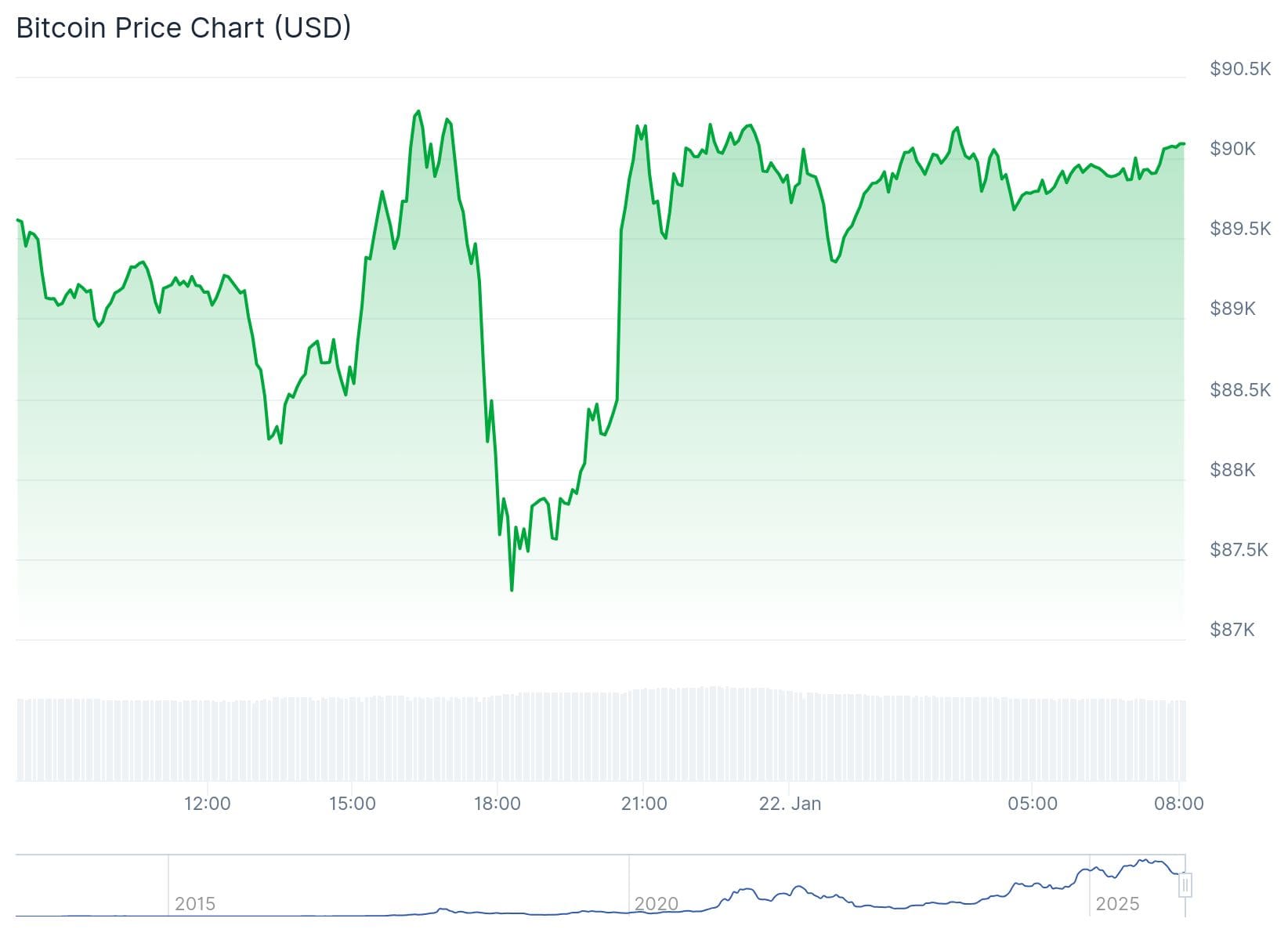 Aan het begin van de avond draaide het beeld opnieuw. Bitcoin schoot omhoog nadat Donald Trump zei dat hij samen met NAVO-topman Mark Rutte “het kader heeft gevormd voor een toekomstige deal met betrekking tot Groenland”. Daar lees je in dit artikel meer over.
