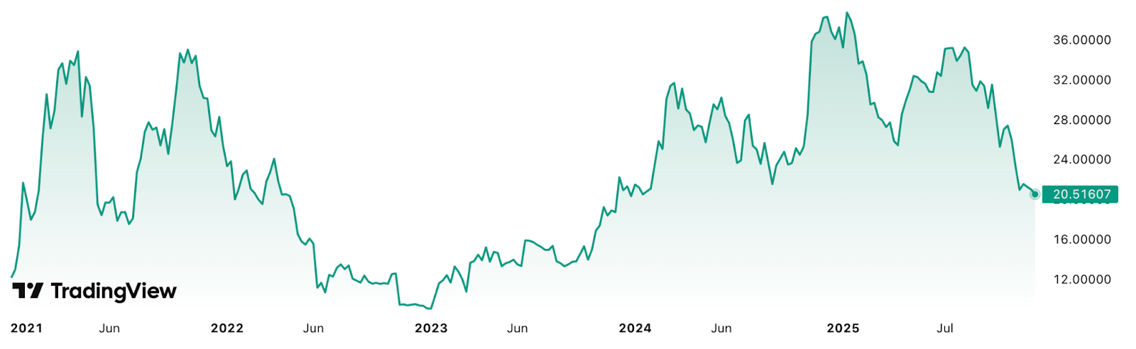 Deze ontwikkeling betekent niet dat Bitcoin fors daalt, maar wel dat het zijn glans als ‘veilige haven’ deels verliest. De BTC-goudratio is in 2025 met 50 procent gedaald, voornamelijk doordat goud uitzonderlijk goed presteerde.