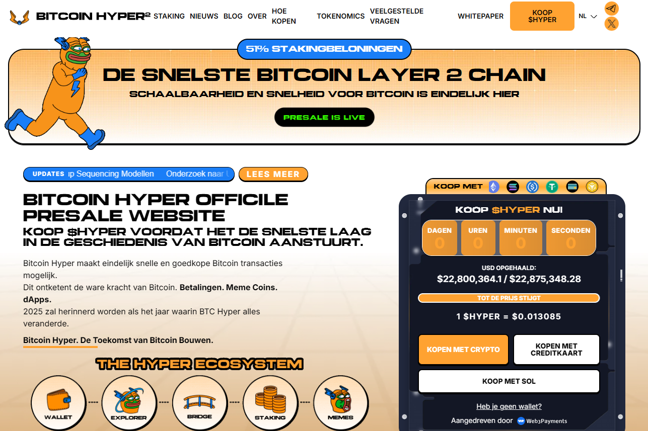 - Bitcoin Hyper passeerde de grens van $22 miljoen opgehaald kapitaal, waarmee het zich positioneert als een van de snelst groeiende crypto presales van 2025.