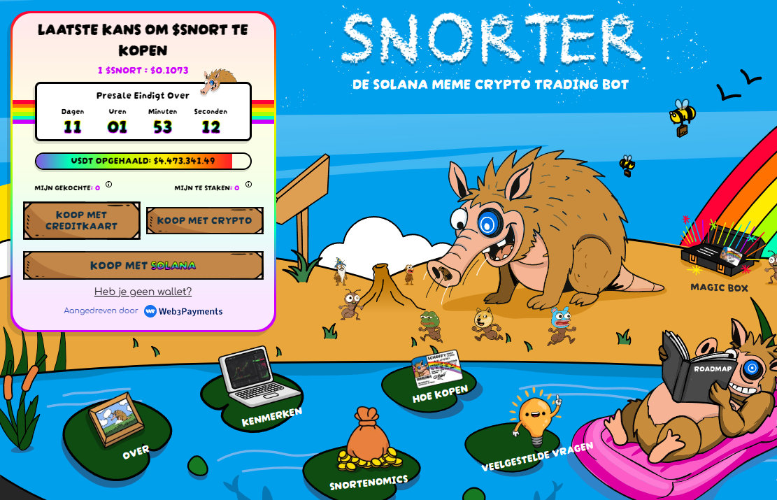 Waar de meeste meme coins enkel leven van hype, biedt Snorter echte utility. De bot fungeert als een volledig trading ecosysteem, met sub-second sniping, real-time rug pull en honeypot detectie en lage trading fees die van 1,5% dalen naar slechts 0,85% voor $SNORT holders. Daarmee is het één van de goedkoopste en snelste oplossingen op Solana en Ethereum, en binnenkort ook op BNB, Polygon en Base.