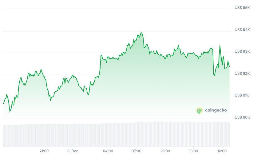 De koers van bitcoin is vandaag gestegen met 2 procent en komt daarmee op 92.277 dollar. Gedurende de afgelopen 24 uur wist bitcoin een sterke rally te maken en kwam de koers zelf in de buurt van de 94.000 dollar. Inmiddels is de koers dus weer gezakt, maar komt het neer op een goed resultaat voor de grootste cryptomunt vandaag.