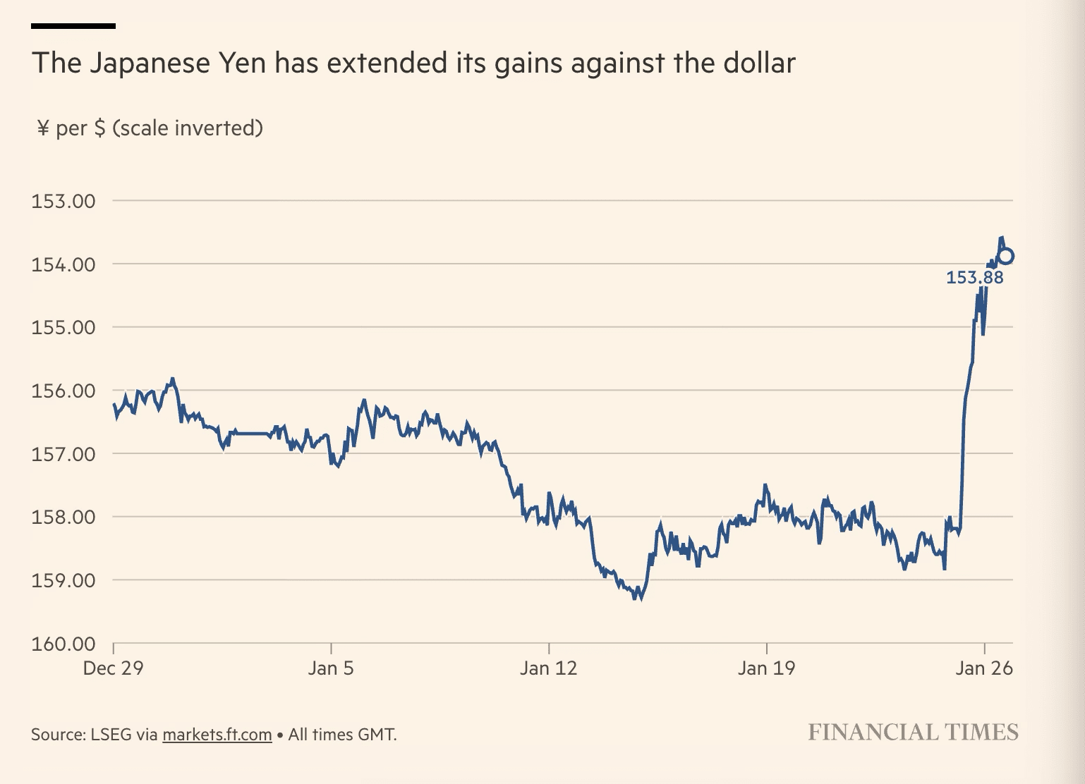Maandag stond in het teken van de zwakke Amerikaanse dollar, die naar het laagste niveau in maanden afdaalde. Tegelijkertijd ging de goudprijs voor het eerst in de geschiedenis boven de 5.000 dollar uit, terwijl de markt speculeerde over samenwerking tussen de VS en Japan om de yen te ondersteunen.