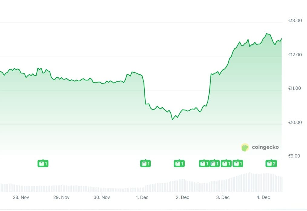 Op de openingsdag registreerde GLNK een netto instroom van ruim 31,7 miljoen euro. De chainlink koers reageerde ook direct. LINK steeg met bijna 7 procent naar ongeveer 14,40 dollar per munt. De combinatie van instroom en prijsreactie wijst erop dat institutionele partijen steeds meer oog hebben voor infrastructuurtokens zoals Chainlink.