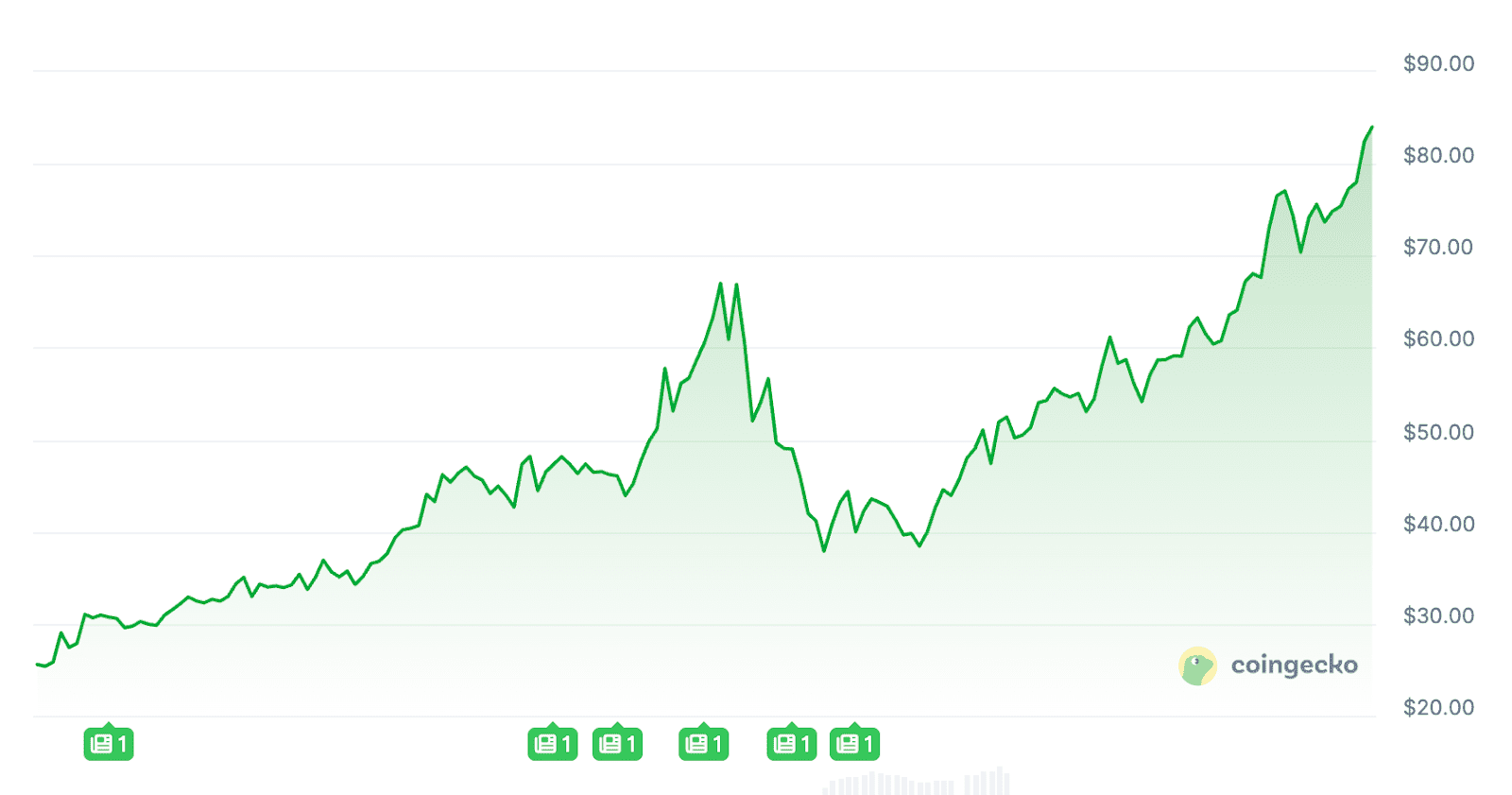 De RIVER koers van de afgelopen week. – Bron: CoinGecko