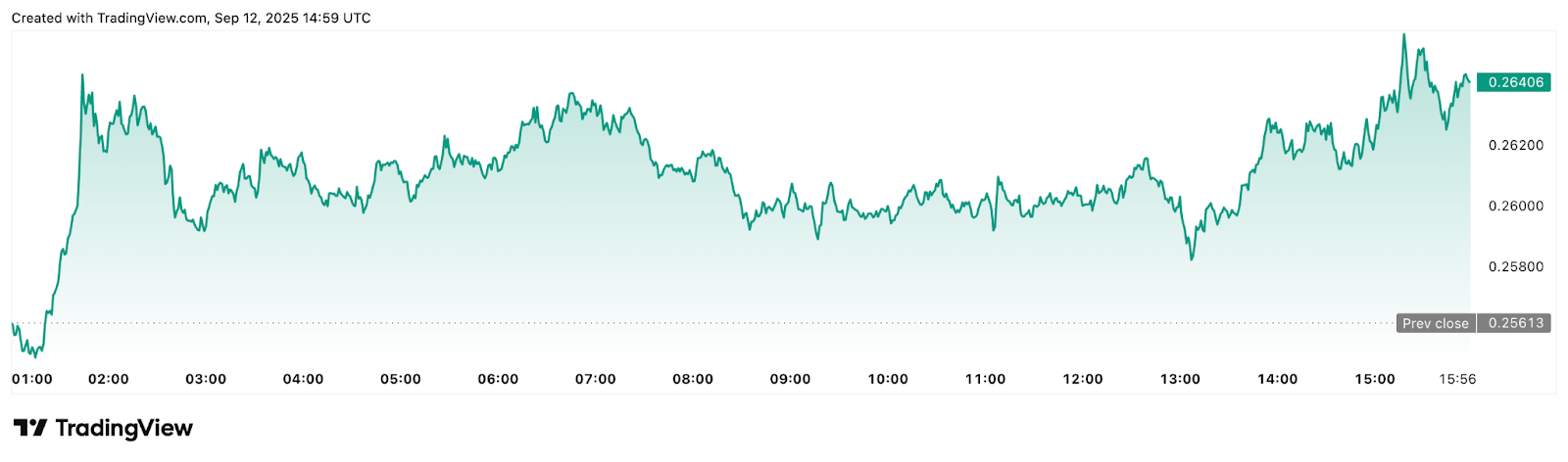Marktexperts achten de kans nu groot dat Dogecoin op korte termijn stijgt van de huidige prijs van $0,264 richting $0,30, waarbij voorspellingen wijzen op een kans van 66,6% dat dit scenario werkelijkheid wordt. Een doorbraak boven dat niveau zou sterkere rallies kunnen aanwakkeren, met een koersdoel tussen $0,40 en $0,50, mocht de instroom via ETF’s vergelijkbaar zijn met het enthousiasme rond Bitcoin. Voorlopig is de meest gangbare Dogecoin-prijsvoorspelling dat $0,30 fungeert als het volgende kritieke weerstandsniveau.