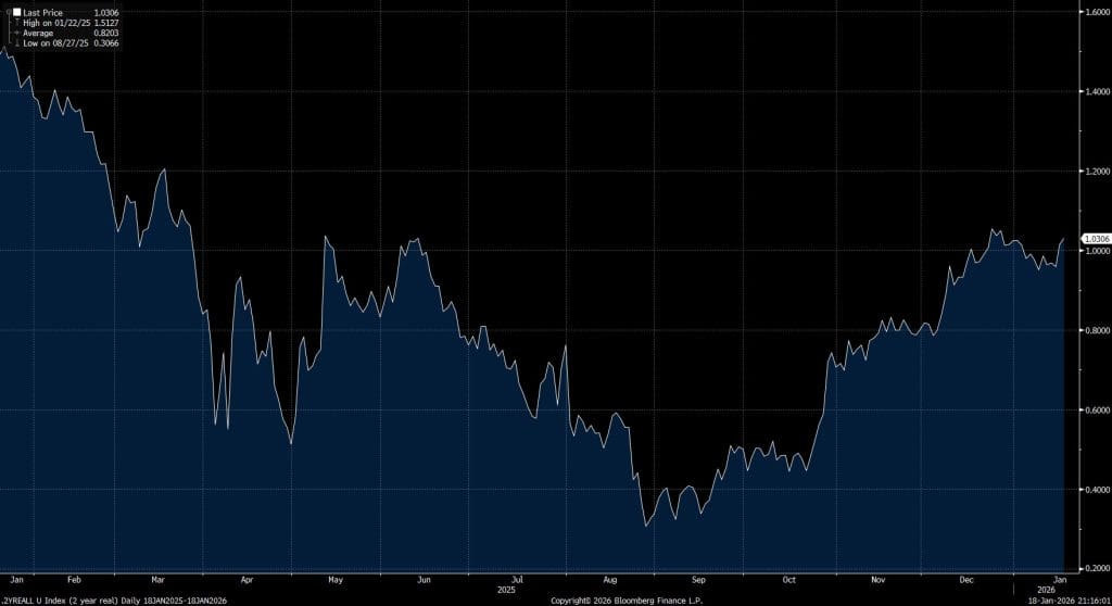 Dat voelt ongemakkelijk. Juist in markten waarin alles “klopt”, verwachten beleggers momentum. Als dat uitblijft, gaat men zoeken naar verklaringen. Die ligt wat mij betreft bij één variabele die vaak wordt onderschat: de reële rente.