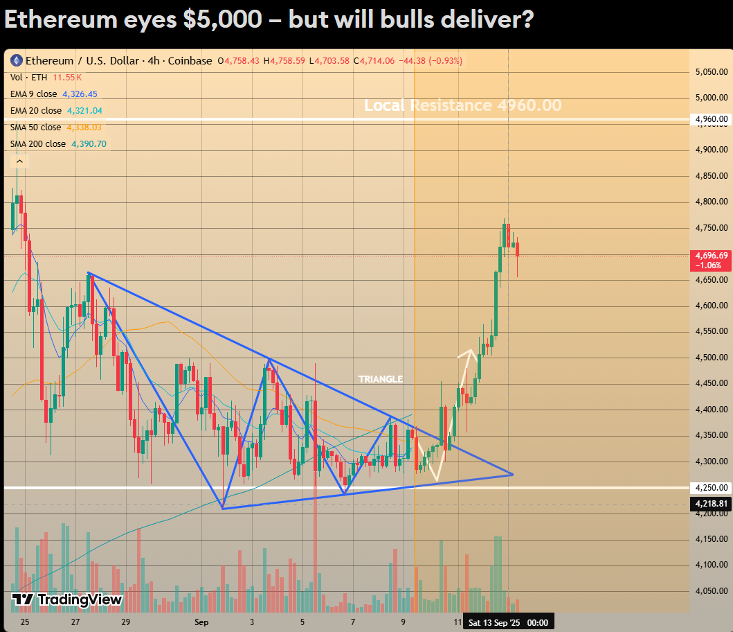Een Ethereum koersdoel van $10.000 tegen 2026 wordt als realistisch beschouwd, maar dit vertegenwoordigt een stabiel groeitempo, geen explosieve stijging zoals early adopters eerder zagen. Ethereum noteert vandaag rond de $4.700 en wordt ondersteund door institutionele interesse, maar door zijn omvang is het opwaarts potentieel beperkt.