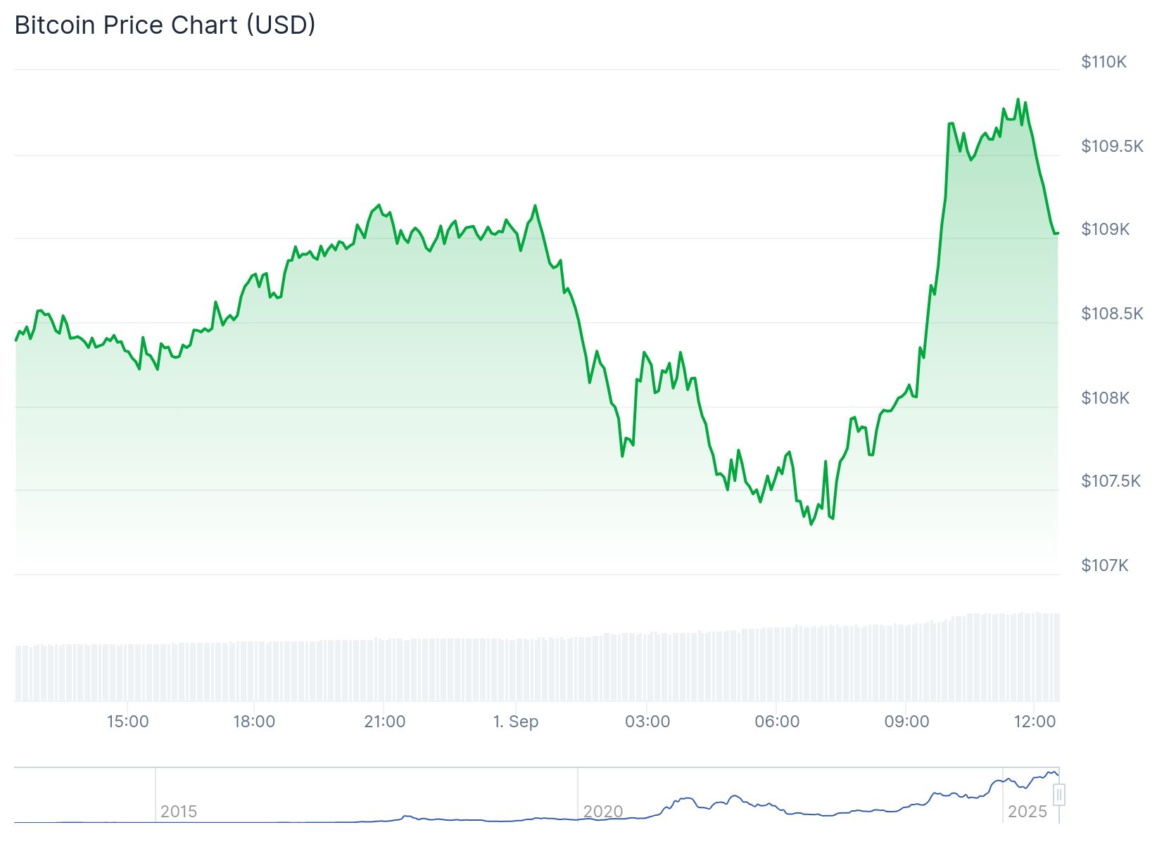 Hoewel er nog geen officieel bewijs of documentatie is die dit gerucht ondersteunt, lijkt het nieuws toch invloed te hebben op de koers. Bitcoin daalde vanochtend naar het laagste punt sinds 2 juli, op 107.265 dollar, maar herstelt weer. De koers kwam tot een piek van 109.800 dollar, maar gaat nu voor 109.000 dollar rond.