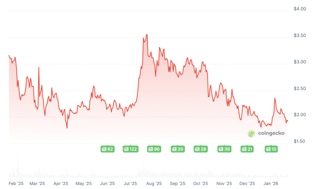 • Resistance: $1.97 and $2 pic.twitter.com/VZeGVncAYG— Ali Charts (@alicharts) January 22, 2026
