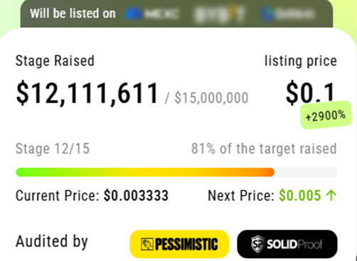 In de volgende, dertiende fase van de presale zal de waarde van de $XYZ-token verder stijgen tot $0,005, wat betekent dat vroege investeerders kans maken op een grotere korting.
