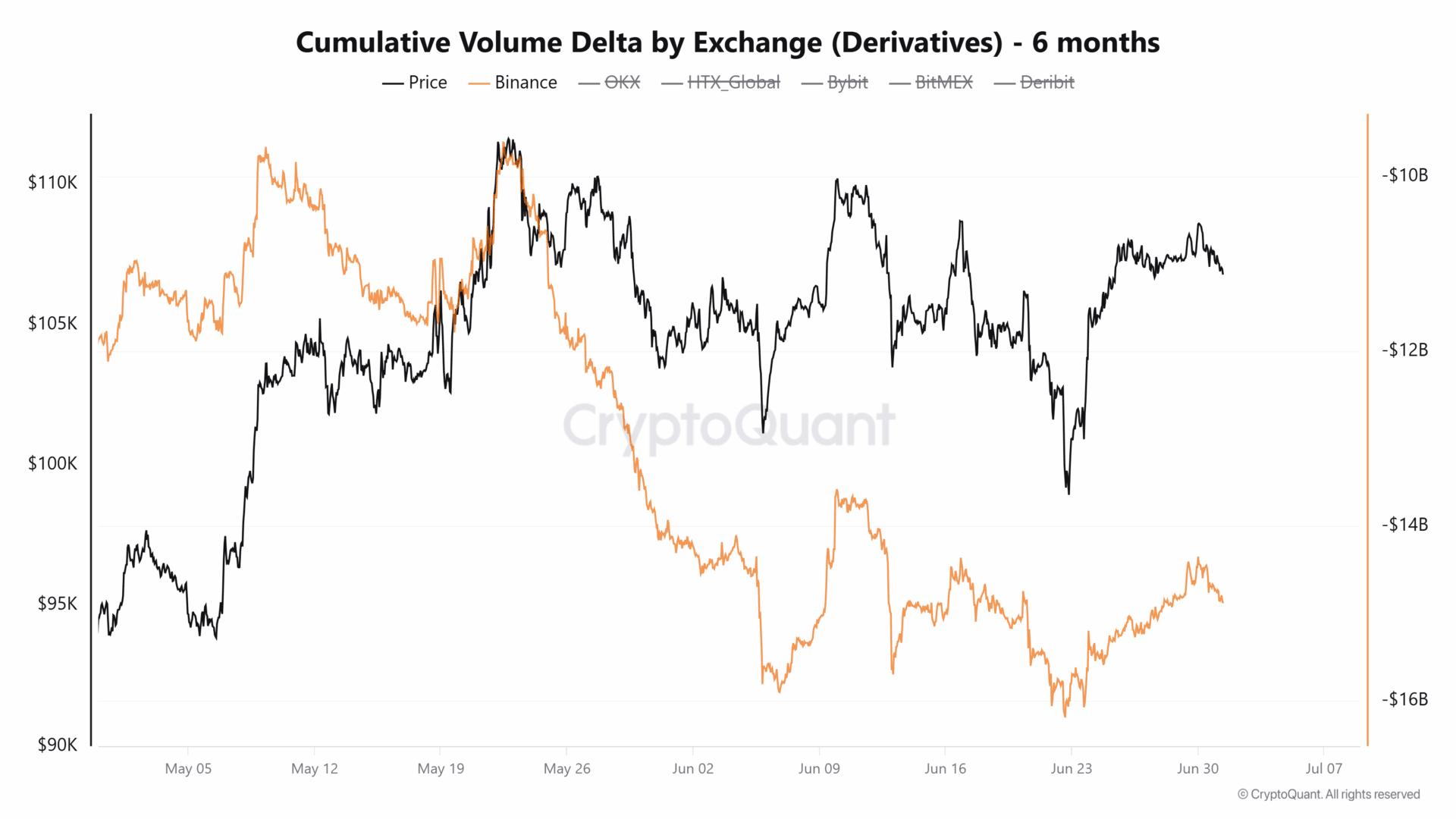 Cumulative Volume Delta op Binance. Bron: CryptoQuant