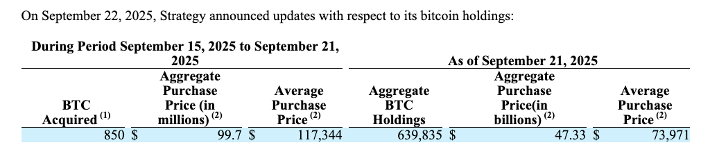 Volgens een melding bij de Amerikaanse beurswaakhond SEC ging het om 850 Bitcoin voor een bedrag van 99,7 miljoen dollar. De aankoop gebeurde tegen een gemiddelde prijs van 117.344 dollar per munt.