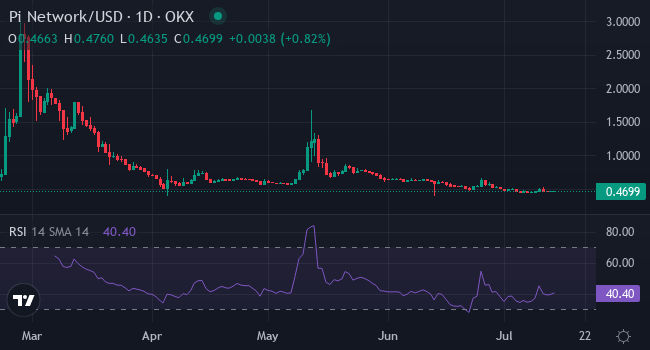 De prijs van Pi Network (PI) heeft recent bescheiden schommelingen laten zien. Momenteel handelt de coin tussen $0,44 en $0,51, met een lichte stijging van 0,62% in de afgelopen week. Over de afgelopen maand is de prijs echter met 19,72% gedaald, en over de afgelopen zes maanden zelfs met 32,87%. Deze cijfers laten zien dat er op korte termijn sprake is van stabiliteit, terwijl de langetermijntrend neerwaarts is.
