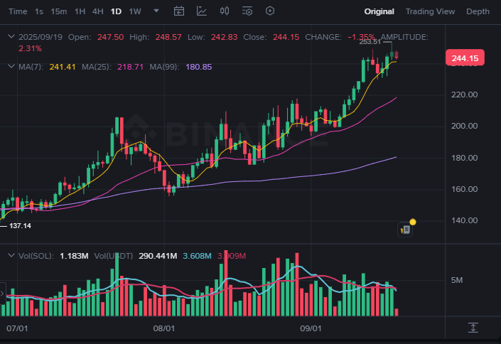 Het pad naar $300 voor Solana wordt met de dag geloofwaardiger, aangezien institutionele beleggers miljarden blijven investeren in het Solana-ecosysteem. $SOL heeft zijn kracht bewezen door op 14 september te stijgen tot $250.