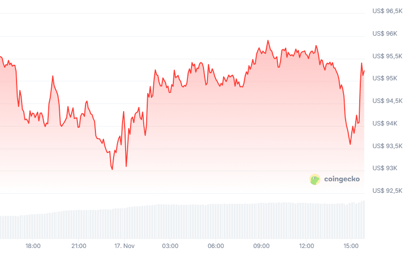 Vandaag is de koers met 0,3 procent gedaald en blijft de schade voor nu beperkt. Hiermee heeft bitcoin momenteel een waarde van ongeveer 95.000 dollar.
