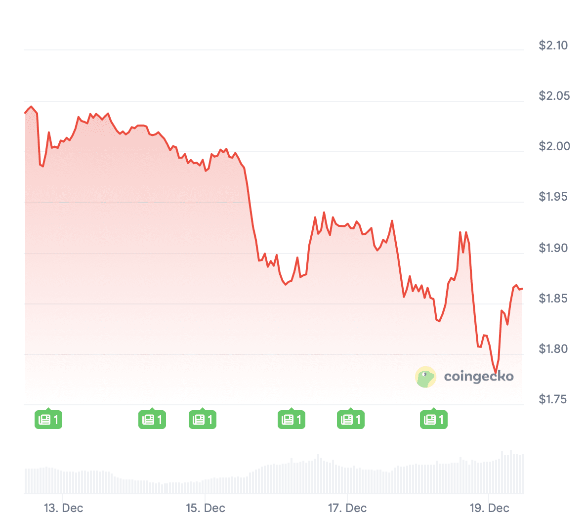 Op het moment van schrijven is XRP 1,86 dollar waard. Hiermee bevindt de koers van XRP zich onder een sterk weerstandsniveau. In de laatste 24 uur is de koers nagenoeg stabiel gebleven.