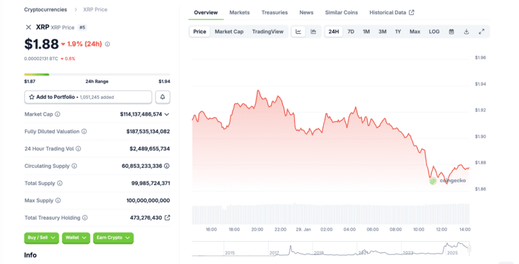 Eerder deze maand steeg de koers van XRP nog tot 2,39 dollar. Op het moment van schrijven staat de prijs rond 1,88 dollar, waarmee vrijwel alle winst van dit jaar weer is verdwenen. Ook na deze daling blijft het aantal grote wallets toenemen.